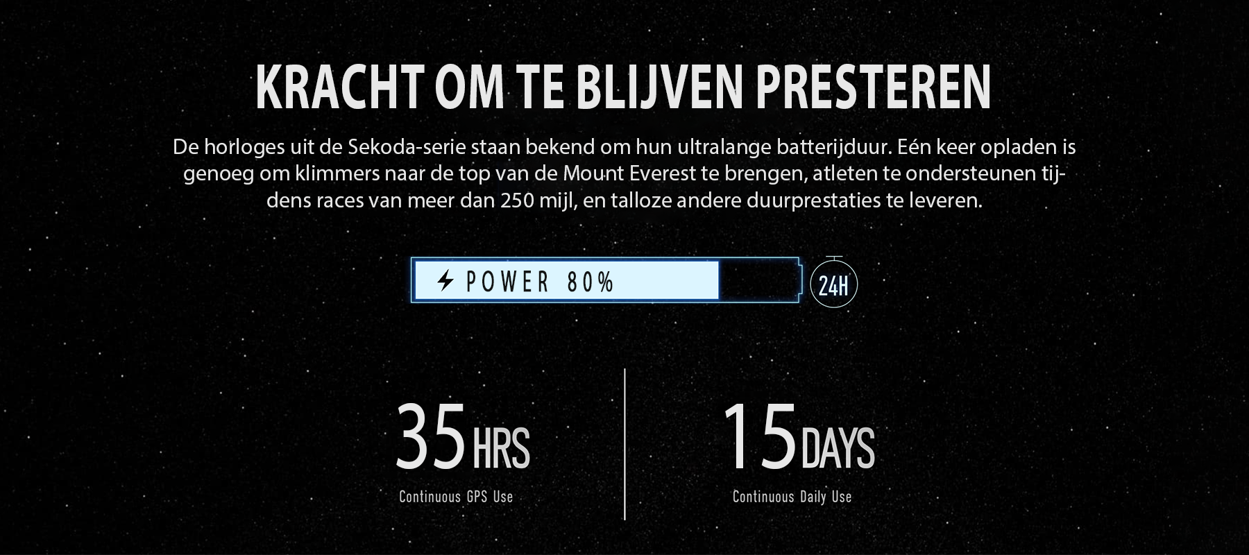 - Ultra-Long Battery Life- Krachtige batterij biedt 15 dagen bij dagelijks gebruik of 35 uur in GPS-modus.