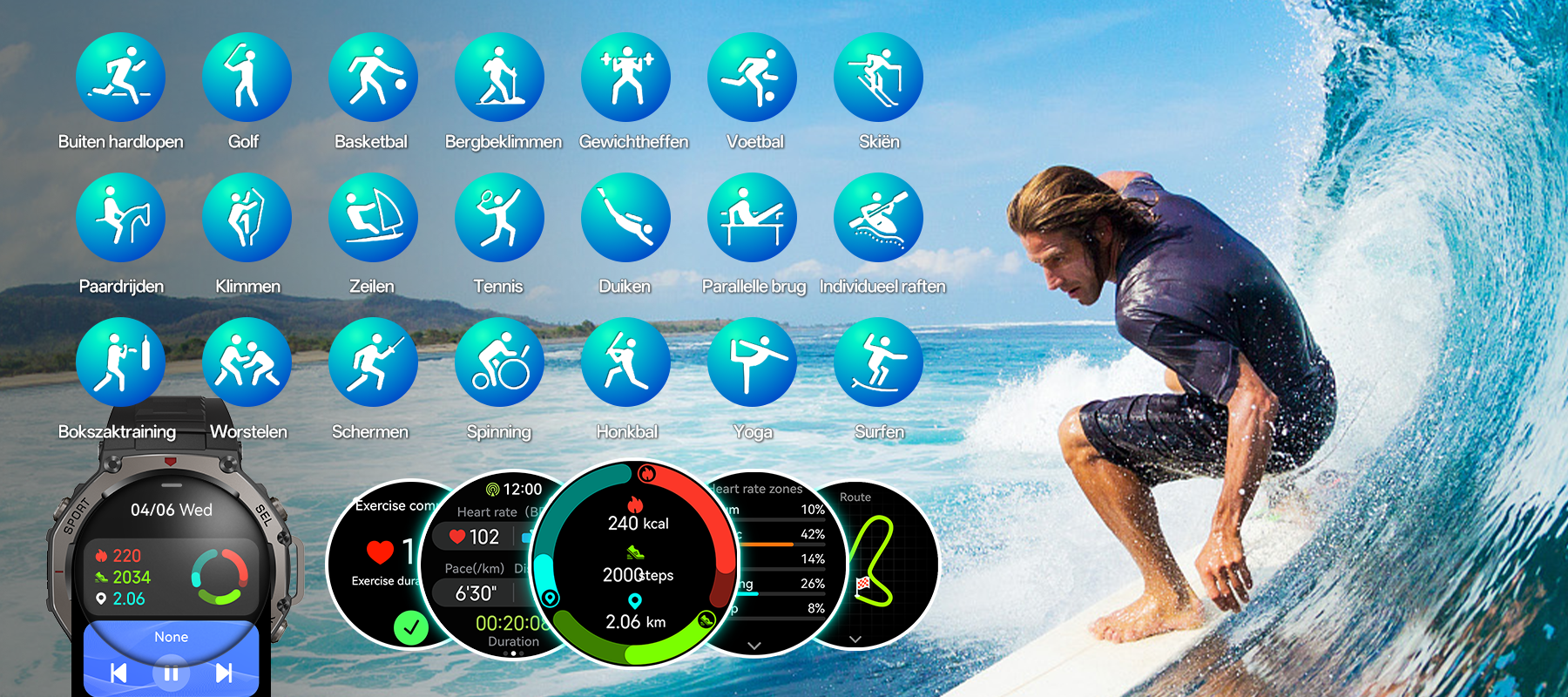 - Comprehensive Sports & Health Monitoring- Multifunctionele sensoren volgen nauwkeurig meer dan 170 sporten en gezondheidsgegevens.