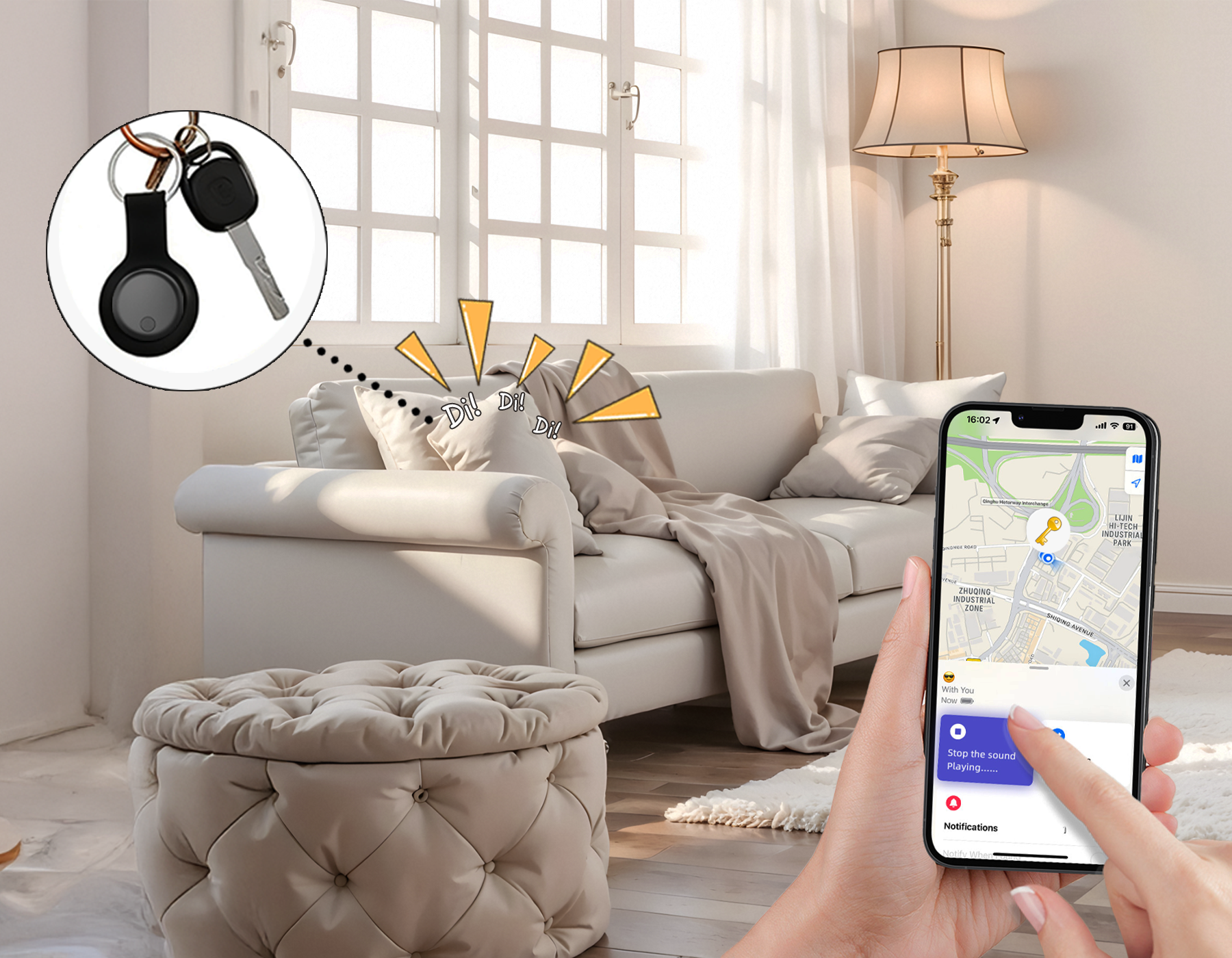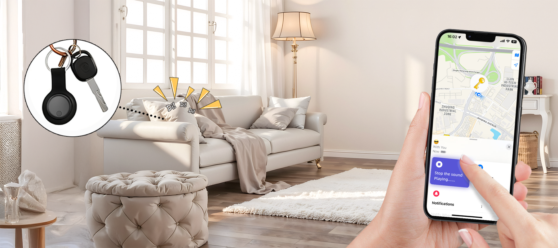 - Instant Finder: Gebruik de app om te navigeren of speel een geluid af om uw item snel terug te vinden.
